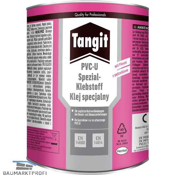 Spezialkleber zum Verkleben von thermoplastischen Druckrohrleitungssystemen aus PVC-U nach EN 1452 (nur für Abwasserleitungen) und EN ISO 15493, sowie für drucklose Rohrleitungssysteme nach EN1329.