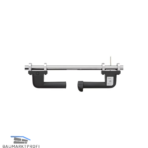Ergonomisch gestaltete Griffe der Handbedieneinheit mit System- und Akkustatus, LED-Anzeige, Ein-Knopf-Bedienung. Geeignet für horizontale oder vertikale Ausrichtung für Rohrbefestigung von ø 27-35 mm und Flächenbefestigung.