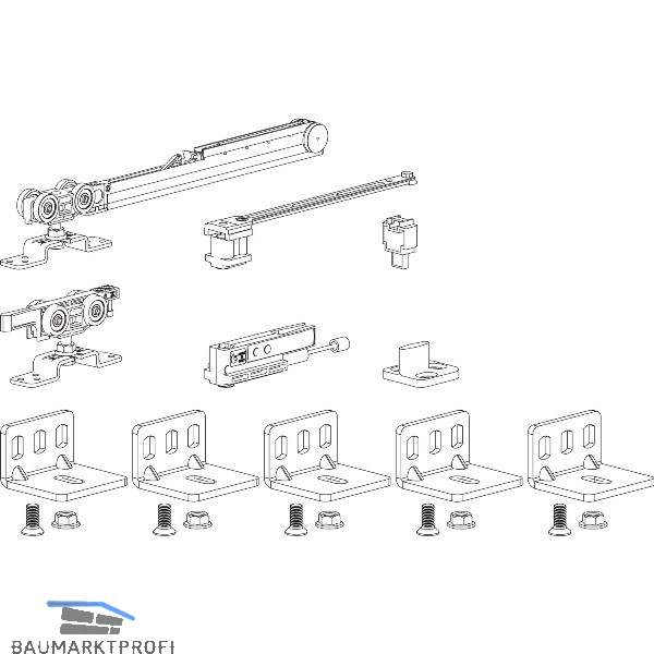 Ohne Laufschiene. Mit Einzugsdämpfung und gedämpften Fangstopper. Für Decken- oder Wandmontage.