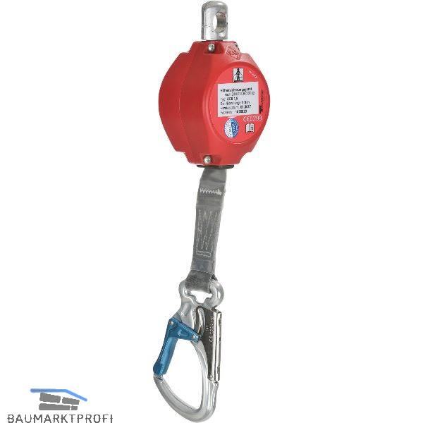 Ausführung: Aluminiumgehäuse - robust und sehr leicht, Textilband - extrem widerstandsfähig und kantengeprüft über 2x 90° Kante (R= > 0,5 mm!), Alu-Attack-Karabiner am Bandende -einfaches Handling, Drehwirbel am Gehäuse - kein Verdrehen des Bandes möglich, Energieabsorbierende Funktion integriert, geringste Krafteinwirkung auf den menschlichen Körper beim Sturz (weit unter 3 kN!). Mit Abstand die kleinste Auffangstrecke, verwendbar in jeder Lage ohne zusätzliche Mittel, Sturzanzeiger am Bandende, Zusätzlich geprüft nach DIN 19427:2017.