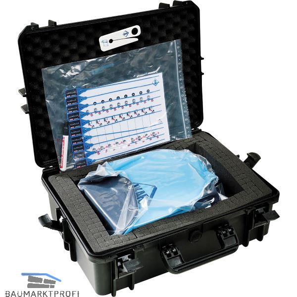 Fliehkraftgebremste Abseilgeräte müssen mind. 1x jährlich durch den Hersteller oder durch vom Hersteller autorisierte Fachpersonen überprüft und gewartet werden. Das Abseilgerät muss meistens verschickt werden und ist dann längere Zeit nicht verfügbar. Außerdem besteht auch die Gefahr, dass es nicht gut gelagert wird oder dass Personen Teile der Rettungstechnik entfernen. Aus diesen Gründen gibt es jetzt eine VAKUUMVERPACKUNG für diese Rettungsgeräte. Die Geräte kommen mit zusätzlicher Ausrüstung, wie Bandschlingen, Karabiner, etc. in einem Gerätesack und anschließend wird alles in einem Spezialbeutel luftdicht verpackt. Dieser Vakuumbeutel wird dann in einem robusten Kunststoffkoffer, geschützt vor UV-Strahlung und äußeren schädigenden Einflüssen, gelagert. Der Koffer wird verplombt und somit ist eine Manipulation sofort erkennbar!