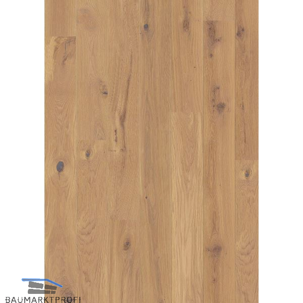 Dreischichtig aufgebauter Naturholzboden mit PowerFIX Verbindung. Formstabil und passgenau.