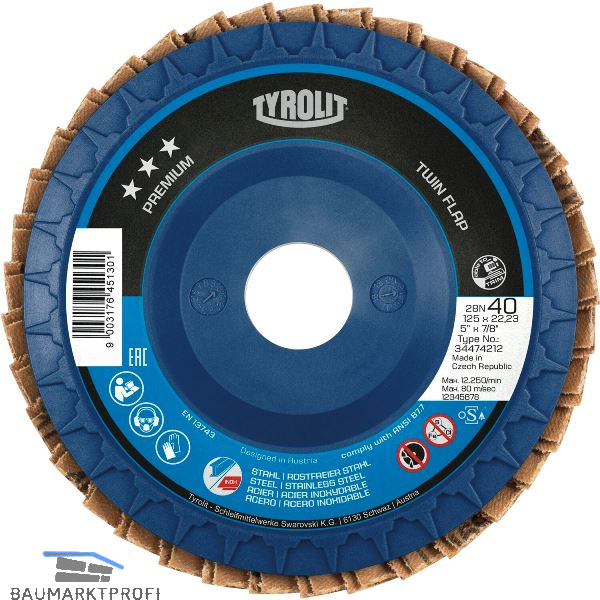 TYROLIT Schleiflamellenteller TwinFlap Premium***gerade Ø 125mm K40 28N