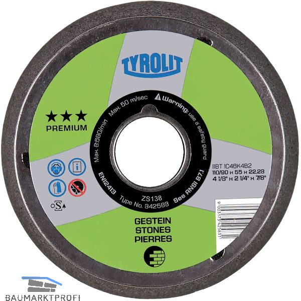TYROLIT Schleiftopf kegelig Premium*** 110/90 x 55 Aufnahme M14 Korn 24 Gestein