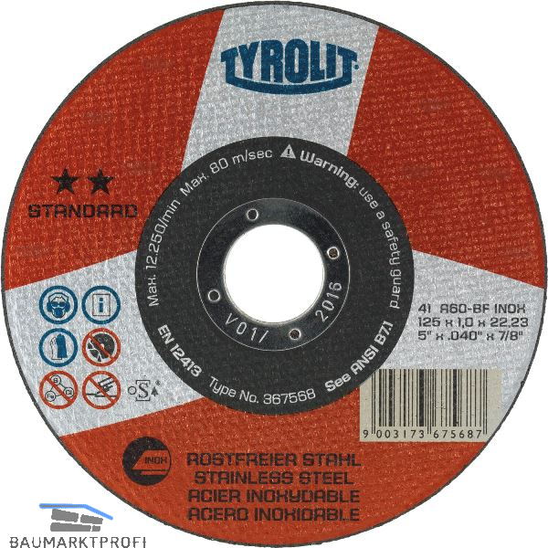 TYROLIT Trennscheibe gerade Standard** 125 x 1,0 mm Inox Form 41