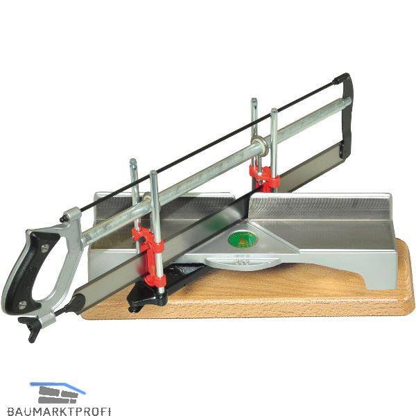 Hochwertige Ausführung. Führungsschieber aus glasfaserverstärktem Kunststoff, zur sicheren und genauen Sägeblattführung. Drehschiene in ihrem Drehpunkt durch kräftigen Stahl-Drehbolzen gelagert. Eine federnde Einstellklinke mit konischem Zentrierbolzen dient zentrischer Momenteinrastung für 90°, 45°, 36°, 30° und 22,5° Winkelschnitte. Rascher und bequemer Sägeblatt-Wechsel. Längeneinsteller wechselweise auf beiden Seiten des Auflagetisches einsetzbar.