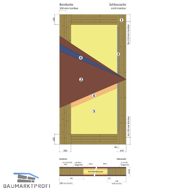 5. Kern-Dämmung PUR-Konstruktionskern, frei von HFCKW, baubiologisch geprüft, recyclingfähig, fugenfrei und kraftschlüssig - direkt verschäumt, dadurch wärmebrückenfrei.
