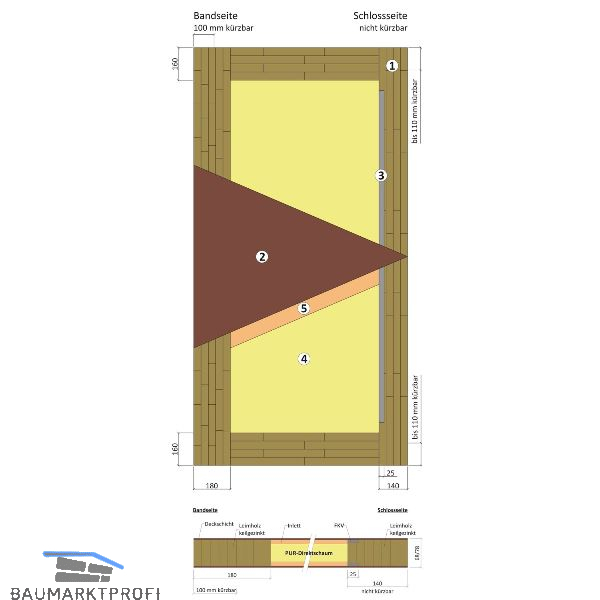 4. Kern-Dämmung PUR-Konstruktionskern, frei von HFCKW, baubiologisch geprüft, recyclingfähig, fugenfrei und kraftschlüssig - direkt verschäumt, dadurch wärmebrückenfrei.