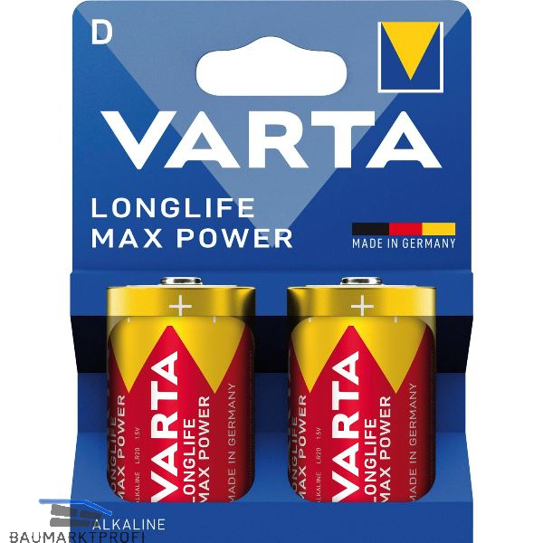VARTA Batterie Longlife Max Power LR20/D 1,5 Volt 2 Stück