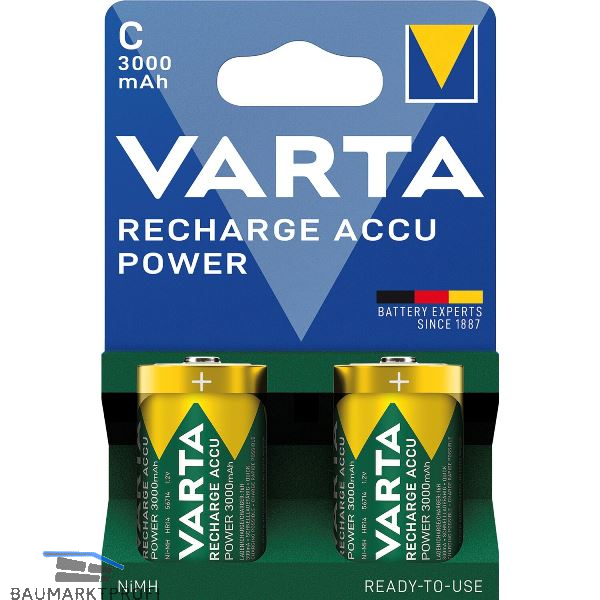 Marke: Varta Ausführung: Nickel-Hydrid IEC: HR14 Größe: C Kapazität (mAh): 3000 Spannung (V): 1,2 Inhalt (ST): 2 Verwendung: für Audio-Geräte, LED-Taschenlampen Zusatzbezeichnung: Recharge Akku Power Type: Baby