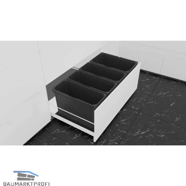 - Kompakte und flexible Abfalltrennung – ideal für die Integration in nur einer Schublade statt eines gesamten Schranks.