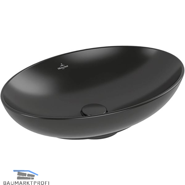 Marke: Villeroy & Boch Type: 4A4700R7 Ausführung: oval Material: Keramik Farbe: Pure Black Oberfläche: CeramicPlus Einbauvariante: Aufsatz Unterbau ab (mm): 600 Außenmaß (mm): 560 x 380 x 120 Beckengröße (mm): 545 x 365 x 100 Grundausstattung: mit Überlauf, ohne Ventil, ohne Bohrloch, ohne Siphon, Unterseite geschliffen