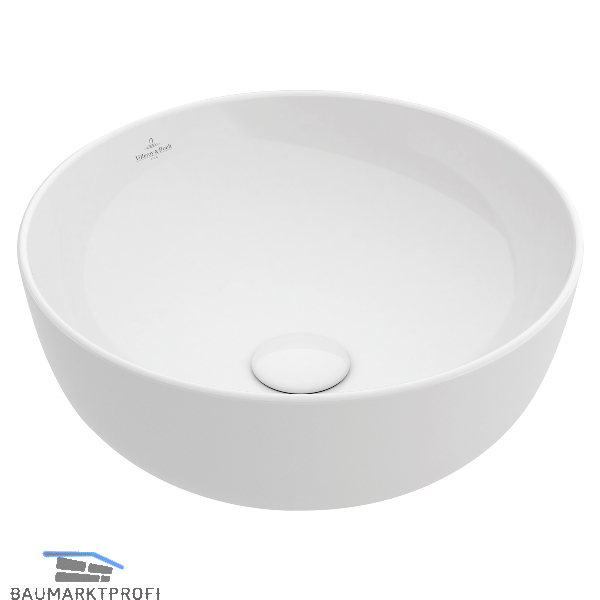 Marke: Villeroy & Boch Type: 417943RW Ausführung: rund Material: Keramik Farbe: Weiß matt CeramicPlus Einbauvariante: Aufsatz Unterbau ab (mm): 450 Außenmaß (mm): ø 430 x 130 Beckengröße (mm): ø 410 x 105 Grundausstattung: ohne Überlauf, ohne Ventil, ohne Bohrloch, ohne Siphon, Unterseite geschliffen