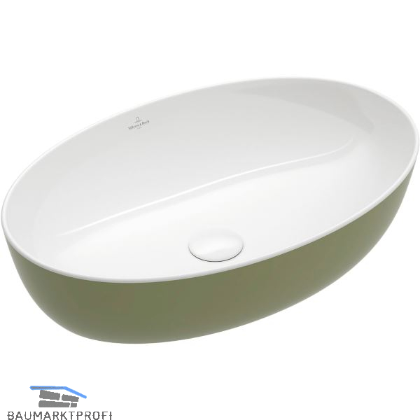 Marke: Villeroy & Boch Type: 419861BCS8 Ausführung: oval Material: Keramik Farbe: Sage Green Einbauvariante: Aufsatz Unterbau ab (mm): 600 Außenmaß (mm): 610 x 410 x 130 Beckengröße (mm): 595 x 395 x 105 Grundausstattung: ohne Überlauf, ohne Ventil, ohne Bohrloch, ohne Siphon, Unterseite geschliffen