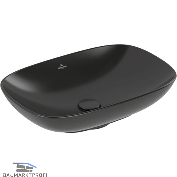 Marke: Villeroy & Boch Type: 4A4900R7 Ausführung: rechteckig Material: Keramik Farbe: Pure Black Oberfläche: CeramicPlus Einbauvariante: Aufsatz Unterbau ab (mm): 600 Außenmaß (mm): 560 x 380 x 120 Beckengröße (mm): 545 x 365 x 100 Grundausstattung: mit Überlauf, ohne Ventil, ohne Bohrloch, ohne Siphon, Unterseite geschliffen