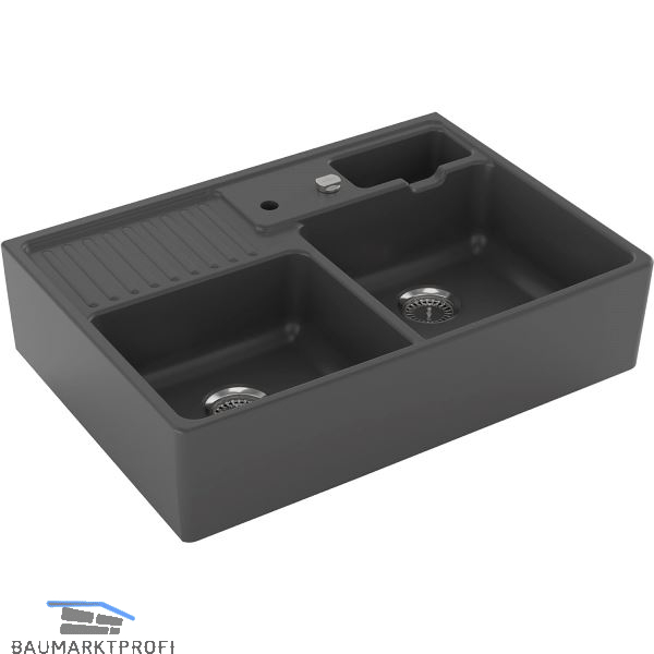 Lieferumfang:inkl. Drehknopf-Siebkorbüberlaufventil 3 1/2", Ablaufverbindung, kein Bohrloch durchgeschlagen, Resteschale, Befestigungssatz, Rückwand geschliffen