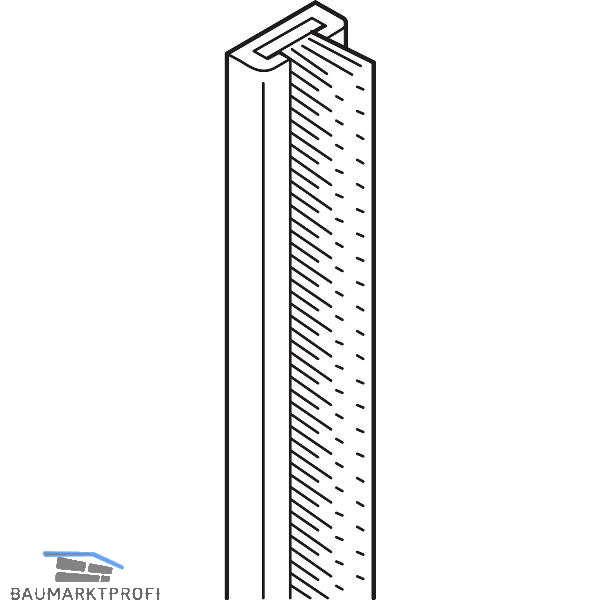 Selbstklebend. Vertikale Montage auf den Glasscheiben. Zum Schließen des Spalts zwischen zwei Glasflügeln im Überlappungsbereich und in der Anlagenmitte (im Stoß), bei Anlagen über Eck ohne Pfosten.