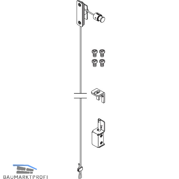 Lieferumfang:1 Zuggriff1 Edelstahlseil L=1200 mm1 Seilumlenkung1 Schloss1 Edelstahl Schließblech