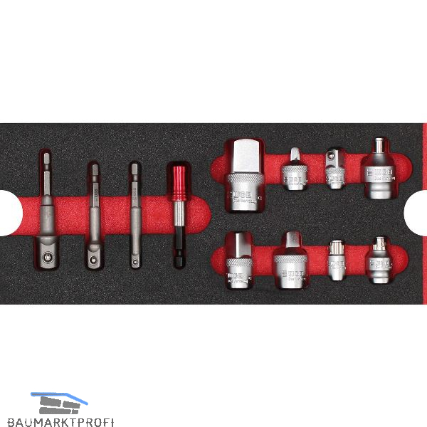 Kombinierbar. Drei Größen passend zu verschiedenen Werkzeugsystemen. Lassen sich bequem austauschen, damit Du Dein Werkzeug transportieren kannst wie Du es willst.