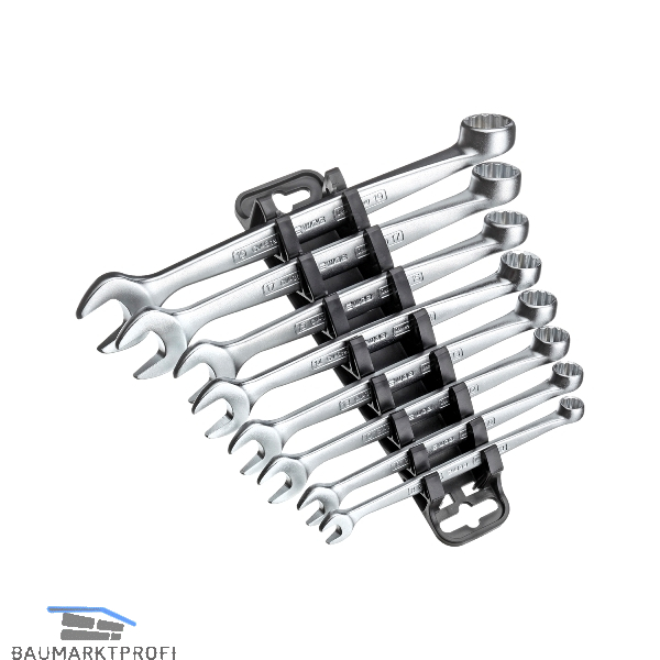 Durch das spezielle HOT!FORCE Design der Maulseite gleitet der Schlüssel leichter und in natürlich-schräger Haltung auf die Schraube, daher erhöht sich der Arbeitsbereich um ca. 15%. Mit gleichen Schlüsselweiten. 3D-Design für bessere Ergonomie. Im Kunststoffhalter.