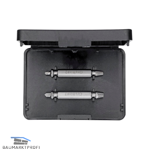 HOT!Grabit entfernt beschädigte Schrauben und Bolzen. Das Set umfasst zwei Ausdreher, welche für alle gängigen Schrauben geeignet sind. Der HOT!Grabit passt durch die 6,3 mm (1/4") Sechskantaufnahme in jeden Akkuschrauber oder jede Bohrmaschine mit Rechts-/Linksfunktion.