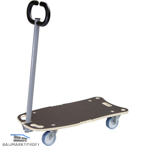 Ladefläche aus äußerst formstabiler Multiplexplatte 18 mm, mit rutschfester MaxiGRIP-Spezialbeschichtung, (Anti-Rutsch Filmsiebdruck), braun Tragflächengröße 800 x 400 mm, Höhe 145 mm, 3 Tragegriffe, 2 Aufhängelöcher, Deichsel 800 mm, Tragkraft 300 kg