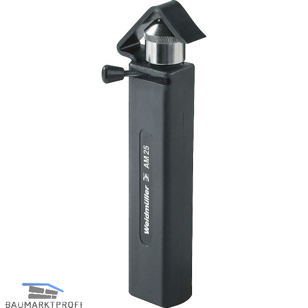 Zum Abmanteln von PVC-Rundkabel. Mit schwenkbarem Messer für Rund-, Längs- und Spiralschnitte, Haltebügel mit integrierter Schneide, mit Ersatzmesser.