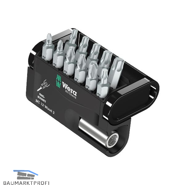 Universalhalter mit Edelstahlhülse, Sprengring und starkem Dauermagnet. Bits zähhart, für den universellen Einsatz. Ideal für Holzanwendungen.