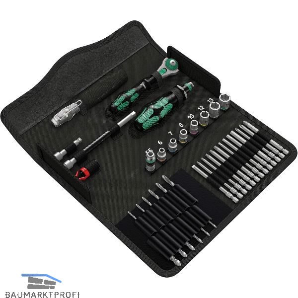 Kompaktes Werkzeug-Set mit den 39 wichtigsten Schraubwerkzeugen für den Metallbau. Textile Box, aufrecht positionierbar zur übersichtlichen Lagerung im Werkstattregal; zusätzlicher Oberflächenschutz durch textiles Außenmaterial; geringes Gewicht und Volumen für vereinfachte Mobilität.