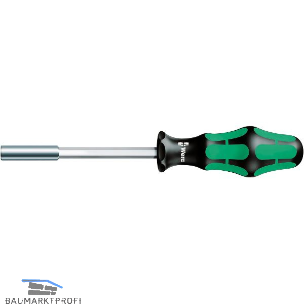 Bit-Handhalter mit Kraftform Plus Griff für angenehm ergonomisches Arbeiten, bei dem Blasen und Schwielen vermieden werden. Harte Griffzonen für hohe Arbeitsgeschwindigkeit, während weiche Griffzonen hohe Drehmomentübertragung garantieren. Der integrierte Sprengring garantiert optimalen Sitz des Werkzeugs im Halter. Geeignet für Bits mit 1/4"-Außensechskantantrieb.