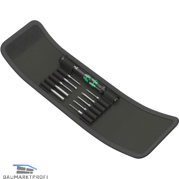 Kraftform Kompakt Micro-Set für feinmechanische Anwendungen. Geeignet für die Aufnahme von Bits mit 4 mm Halfmoon-Antrieb (Wera Reihe 9) und Bits mit 4 mm HIOS-Antrieb (Wera Reihe 21). Griff-/Wechselklingen-System für blitzschnellen Klingenaustausch. Kraftform Micro Griff mit drehbarer Kappe und Schnelldrehzone für blitzschnelles Zwirbeln. Mit 10 Bits für hand- und maschinenbetätigte Verschraubungen. Blitzschnelle Bit-Fixierung mit selbsttätiger Verriegelung. Freilaufende Betätigungshülse zur einfachen Führung des Werkzeugs während des Schraubvorgangs. In robuster Textilbox.