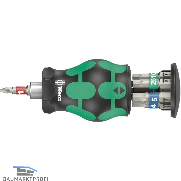 Stubby-Magazin für schnelle Anwendungen am Fahrrad. Besonders kleiner Bits-Handhalter mit kurzer Bitaufnahme für schwer zugängliche Bereiche. Inklusive 7 Edelstahl-Bits, davon 6 in einem Magazin im Handgriff und 1 im Bithalter. Der 2-komponentige Kraftform Griff mit seiner praktischen Kombination aus Hart- und Weichzonen ermöglicht festes Zupacken und präzises Arbeiten. Take it easy Werkzeugfinder: Mit Abtrieb-Farbkennzeichung und Größenstempel für einfaches Finden des gewünschten Bits.