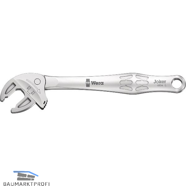 Durch die stufenlos und parallel geführten Backen werden mehrere Maulschlüssel-Einzelabmessungen ersetzt. Die benötigte Größe stellt sich beim Ansetzen an der Sechskant-Mutter oder -Schraube stufenlos von selbst ein. Der integrierte Hebelmechanismus klemmt die Sechskant-Schraube bzw. Mutter zwischen den Backen sicher ein, was die Gefahr des Abrutschens und der Beschädigungen deutlich verringert. Für das schnelle und durchgängige Schrauben ohne Absetzen sorgt die Ratschenfunktion. Durch die Nutzung der Eckweiten-Prismen ist ein Rückschwenkwinkel von nur 30° realisierbar. Die Ein-Schenkel-Konstruktion in Verbindung mit der Ratschenfunktion und dem Eckweitenprisma ermöglicht das Arbeiten auch in engen Bauräumen. Der verstellbare Joker 6004 ist das universelle Schraubwerkzeug.