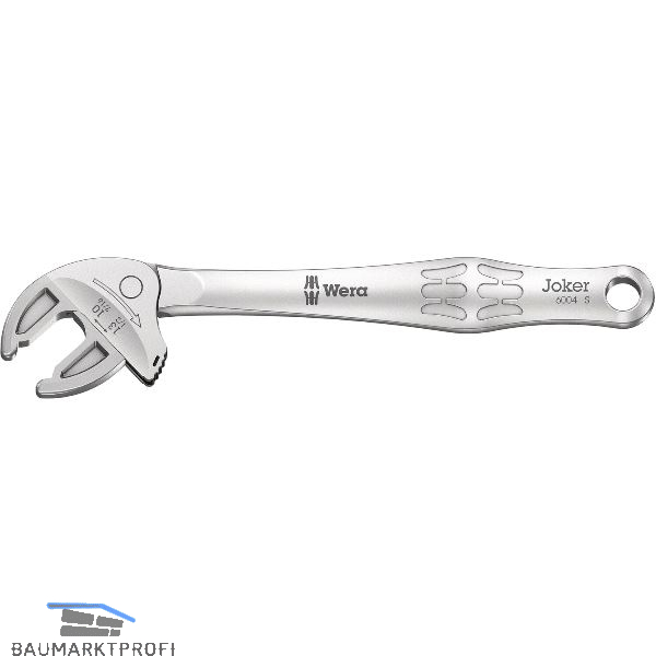Durch die stufenlos und parallel geführten Backen werden mehrere Maulschlüssel-Einzelabmessungen ersetzt. Die benötigte Größe stellt sich beim Ansetzen an der Sechskant-Mutter oder -Schraube stufenlos von selbst ein. Der integrierte Hebelmechanismus klemmt die Sechskant-Schraube bzw. Mutter zwischen den Backen sicher ein, was die Gefahr des Abrutschens und der Beschädigungen deutlich verringert. Für das schnelle und durchgängige Schrauben ohne Absetzen sorgt die Ratschenfunktion. Durch die Nutzung der Eckweiten-Prismen ist ein Rückschwenkwinkel von nur 30° realisierbar. Die Ein-Schenkel-Konstruktion in Verbindung mit der Ratschenfunktion und dem Eckweitenprisma ermöglicht das Arbeiten auch in engen Bauräumen. Der verstellbare Joker 6004 ist das universelle Schraubwerkzeug.