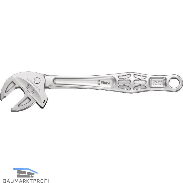 Durch die stufenlos und parallel geführten Backen werden mehrere Maulschlüssel-Einzelabmessungen ersetzt. Die benötigte Größe stellt sich beim Ansetzen an der Sechskant-Mutter oder -Schraube stufenlos von selbst ein. Der integrierte Hebelmechanismus klemmt die Sechskant-Schraube bzw. Mutter zwischen den Backen sicher ein, was die Gefahr des Abrutschens und der Beschädigungen deutlich verringert. Für das schnelle und durchgängige Schrauben ohne Absetzen sorgt die Ratschenfunktion. Durch die Nutzung der Eckweiten-Prismen ist ein Rückschwenkwinkel von nur 30° realisierbar. Die Ein-Schenkel-Konstruktion in Verbindung mit der Ratschenfunktion und dem Eckweitenprisma ermöglicht das Arbeiten auch in engen Bauräumen. Der verstellbare Joker 6004 ist das universelle Schraubwerkzeug.