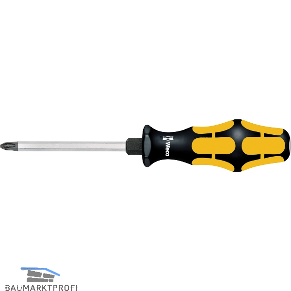 Schraubmeißel zum Schrauben, Meißeln und Stemmen. Mit Schlagkappe, Schlüsselhilfe und durchgehender Sechskantklinge, extrazäh. Wera Blackpoint-Spitze. Kraftform-Griff (mit Hart- und Weichzonen) mit Abrollschutz.