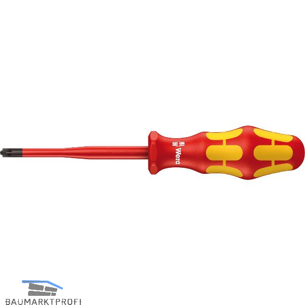 VDE-Schraubendreher mit mehrkomponentigem Kraftform Plus Griff für schnelles und schonendes Arbeiten: Harte Griffzonen für hohe Arbeitsgeschwindigkeit, während weiche Griffzonen hohe Drehmomentübertragung garantieren. Kombinationsprofil Schlitz und Pozidriv, vor allem zur Verwendung bei Reihenklemmen, Sicherungskästen, Schaltern, Relais. Stückprüfung im Wasserbad bei 10.000 V für sicheres Arbeiten bei der zugelassenen Spannung von 1.000 V. Der Sechskantabrollschutz verhindert lästiges Wegrollen am Arbeitsplatz.