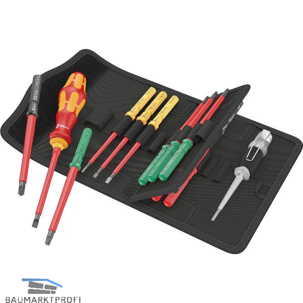 VDE-Wechselklingen mit Handhalter 817 VDE mit Abrollschutz. Wechselklingen mit Take it easy Werkzeugfinder mit Farbkennzeichnung nach Profilen und mit gelaserter Größenangabe. Stückgeprüfte Werkzeuge gem. IEC 60900. Stückprüfung im Wasserbad bei 10.000 V für sicheres Arbeiten bei der zugelassenen Spannung von 1.000 V.