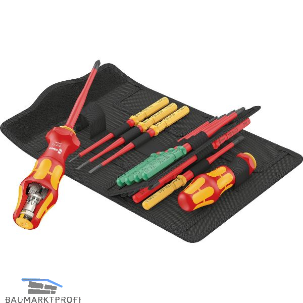 VDE-Wechselklingen mit praktischer Zwirbelfunktion, Abrollschutz und Werkzeugfinder Take it easy Farbkennzeichnung nach Profilen. 4-fache Schraubgeschwindigkeit dank Turbo-Funktion (rein mechanisch). Aktivierung und Deaktivierung der Turbo-Funktion durch einfachen Knopfdruck. Turbo-Funktion speziell für leichtgängige Verschraubungen. Für Verschraubungen mit stetig ansteigendem Drehmoment ohne Turbofunktion wie ein normaler Schraubendreher nutzbar. Robustes, wartungsfreies Getriebe aus Stahl. Reduzierter Klingendurchmesser mit integrierter Schutzisolation für tiefergelegene Schrauben. Stückgeprüftes Werkzeug gem. IEC 60900 bei 10.000 V.