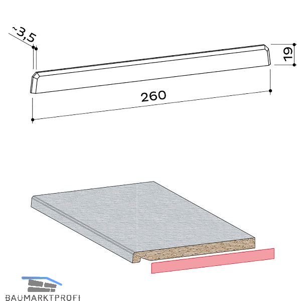 Mit übergreifendem Rand und zwei gefasten Kanten.