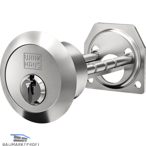 - Mechanisches Zackenschlüsselsystem als Außenzylinder ausgeführt, mit einseitig senkrechten Schlüsseleinschub