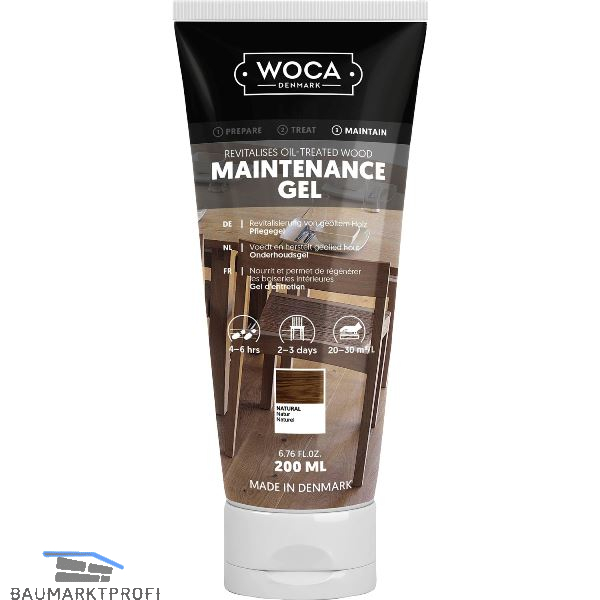 Maintenance Gel - Das Pflegegel dient zur Pflege und Erhaltung geölter Holzoberflächen und Fußböden in geschlossenen Räumen. Das Öl trocknet schnell und ergibt eine schöne, wasser- und schmutzabweisende Oberfläche. Pflegegel ist für Möbel, Küchenarbeitsplatten, Böden und andere Holzoberflächen in geschlossenen Räumen geeignet. Es ist auch für industriell geölte/UV-geölte Oberflächen zu empfehlen.