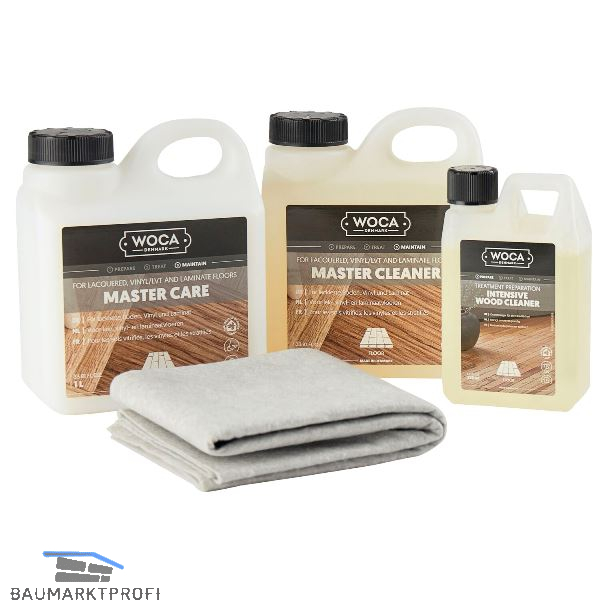 Box mit allen erforderlichen Produkten zur Vollpflege für alle Vinyl, Laminat und Lackoberflächen.