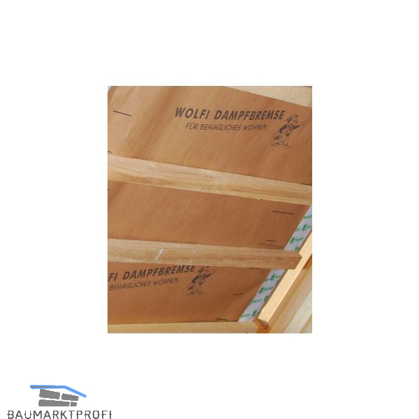 Anwendungsgebiete:Wolfi Dampfbremse wird durch tackern, nageln oder kleben, direkt unterhalb der Wärmedämmung, parallel oder quer zu den Sparren der Dachkonstruktion entsprechend der Überlappungslinie spannungsfrei verlegt. Die bedruckte Seite der Dampfbremse zeigt dabei zum Innenraum. Achten Sie darauf, dass alle Überlappungen, Rohrdurchführungen und Beschädigungen mit
