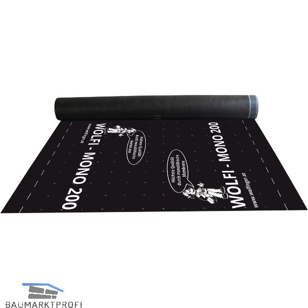Wolfi Mono 200 Dual SK ist ein diffusionsoffener, dreilagiger Verbund, bestehend aus einer monolithischen Membran eingeschweißt zwischen zwei PP-Spinnvliesen. Der dreilagige Aufbau verleiht Wolfi Mono 200 Dual SK eine sehr hohe Regenwasserdichtheit. Die Ventilierung des Daches wird durch die Wasserdampfdurchlässigkeit mit einem sd-Wert von 0,1 m gewährleistet. Die Verlegung ist abhängig von der Regeldachneigung der Dacheindeckung und der Schneelast (siehe auch ÖNORM B 4119 und EN 1991-1-3).