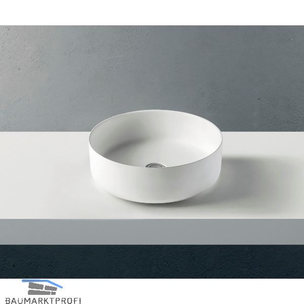 Marke: Ziebermayr Type: Rondo BF-450 Ausführung: rund Material: Mineralwerkstoff Farbe: Weiß matt Einbauvariante: Aufsatz Unterbau ab (mm): 450 Außenmaß (mm): ø 450 x 150 Beckengröße (mm): ø 450 x 125 Grundausstattung: ohne Überlauf, ohne Ventil, ohne Bohrloch, ohne Siphon