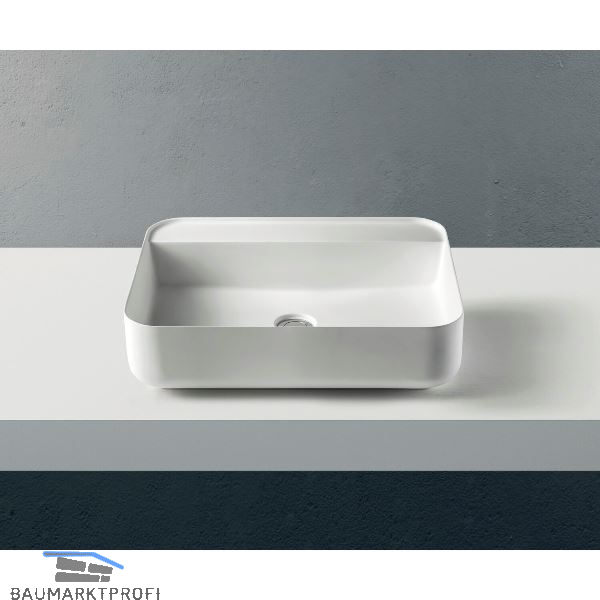Marke: Ziebermayr Type: Squircle Tapbank BF-5542 Ausführung: rechteckig Material: Mineralwerkstoff Farbe: Weiß matt Einbauvariante: Aufsatz Unterbau ab (mm): 600 Außenmaß (mm): 550 x 420 x 140 Beckengröße (mm): 550 x 328 x 115 Grundausstattung: ohne Überlauf, ohne Ventil, 1 Bohrloch, ohne Siphon