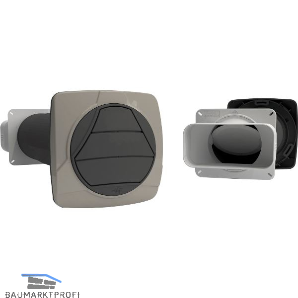 Diese optimAIRo Mauerdurchführung überzeugt durch die ansprechend gestaltete Lüftungsschlitz-Variante „Jalousie“ an der Hauswand und durch die im Maueranschlussstutzen integrierte magnetische Rückstauklappe, mit der bereits an der Außenwand das Eindringen von kalter Luft vermindert wird. Sie ist eine energieeffiziente Lösung, die Sie bedenkenlos auch auf der Wetterseite einsetzen können, da ein Klappern durch die magnetisch verschließende Rückstauklappe verhindert wird.